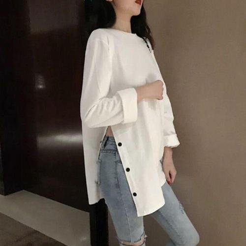 [오너클랜]인기상품 오오티티 루즈핏 옆트임 라인 단추 롱티셔츠 [WF8B21D_260403]