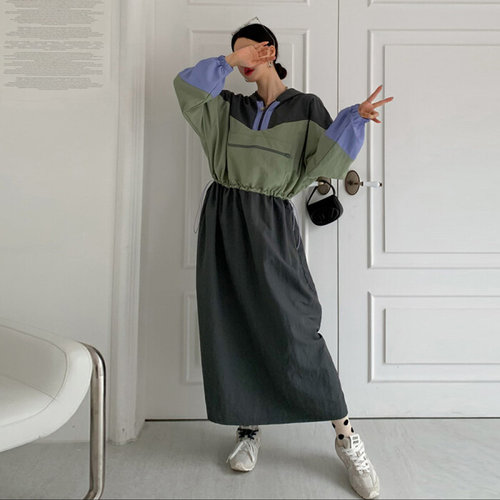 러블리감성 / 가을코디 오버핏 아노락 롱 원피스