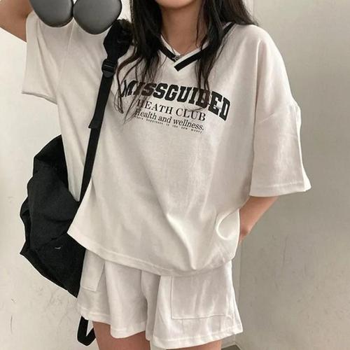 여성 레터링 반팔 반바지 LKSS37 티숙 티숙 롱티숙 루즈핏 여성 나시 WFIOBR3