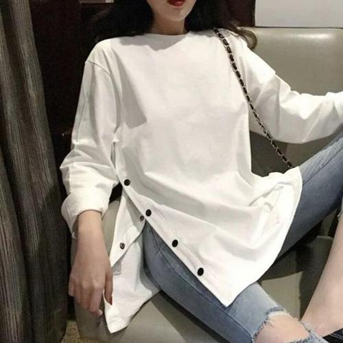 [엄지척]여성 옆트임 롱 긴팔 루즈핏 티셔츠 단추 롱티_19556157_667501