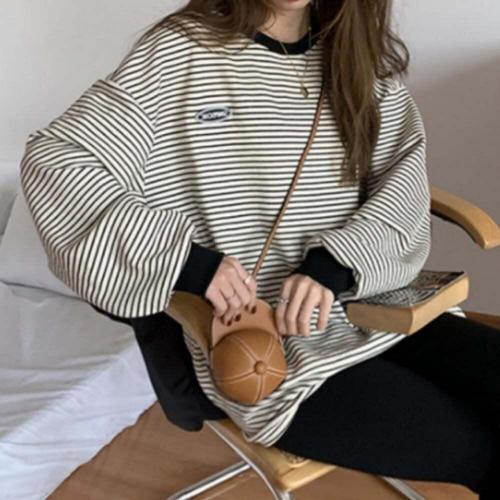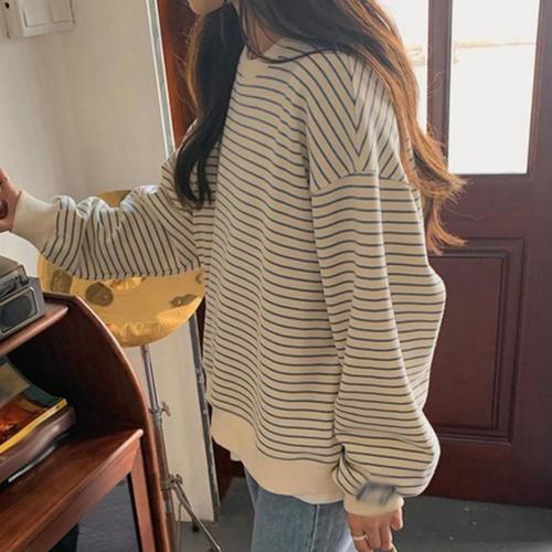 [오너클랜]인기상품 여성 루즈핏 단가라 맨투맨 줄무늬 긴팔 롱슬리브 티셔츠 [WFK6DPT_260406]