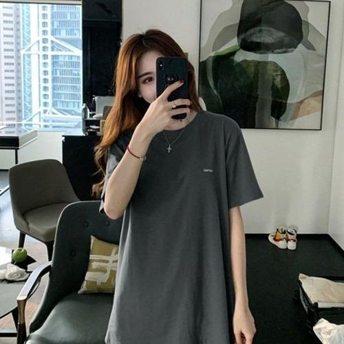 여성 티셔츠 무지 사계절 레이어드 롱 박시 오버핏 루즈핏 반팔 기본 면티
