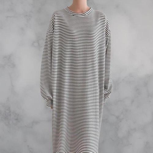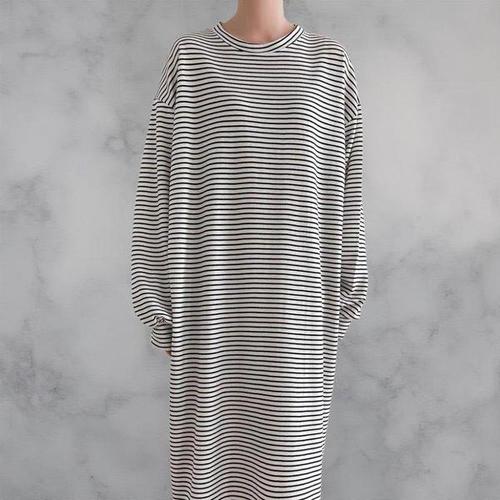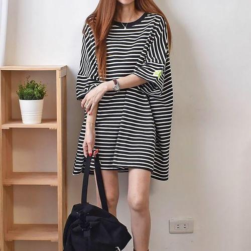 [에이치플러스몰]여성용 스트라이프 루즈핏 반팔 롱 티셔츠 원피스핏