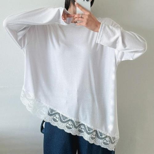 [다잇템][다잇템] 여자 박스핏 레이어드티 민무늬 레이스 롱슬리브 사선 티셔츠_24746064_588872