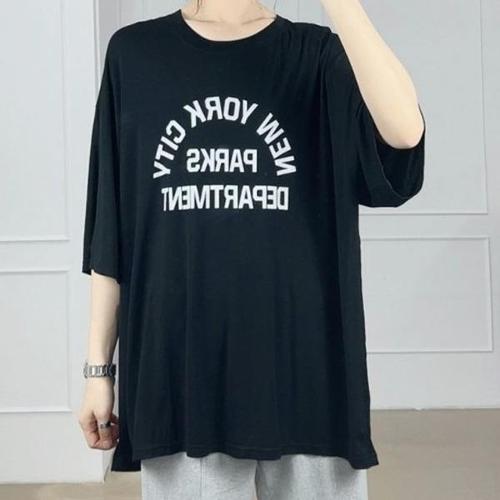 여름701여성빅사이즈 반팔티셔츠 여자롱 루즈핏 박스 라운드넥티 프린트 (새로본)