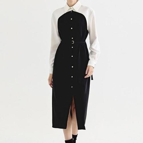[바이어스]루즈핏 볼레로 배색 카라넥 셔츠 롱 벨트 세트 원피스 (18642563A)