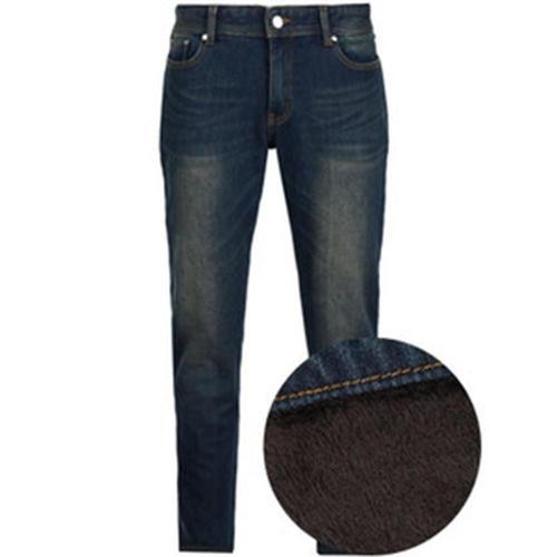 JEEP SPIRIT 남성 캐주얼 청바지 가을 겨울 두꺼운 오버핏 스트레이트 탄성 청바지