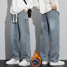 wassup 남자청바지 데님루즈핏청년캐주얼 바지 가을 겨울용 스트레이트 데님 팬츠 기본과 기모