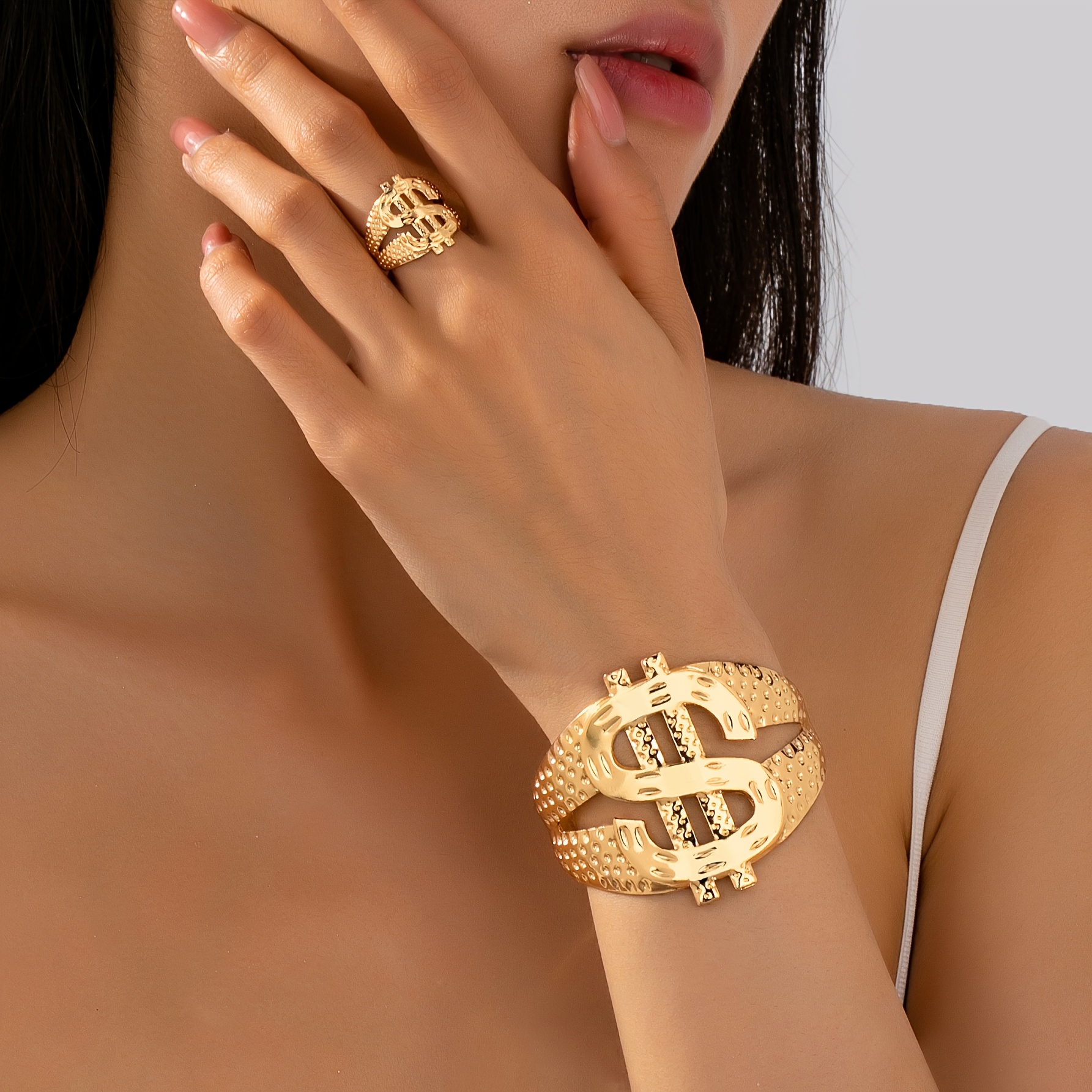 TEMU 유럽과 미국 디자인의 패셔너블하고 스타일리시한 여성용 오픈 팔찌와 반지 세트, 힙합 스트리트 스타일 주얼리