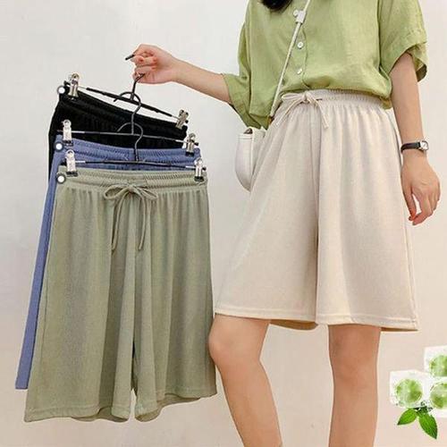 [신상오픈런]여성 단색 린넨 핀턱 와이드 밴딩 여름 숏팬츠