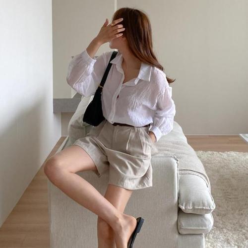 [다잇템]여자 데일리 베이직 핀턱 린넨 숏팬츠