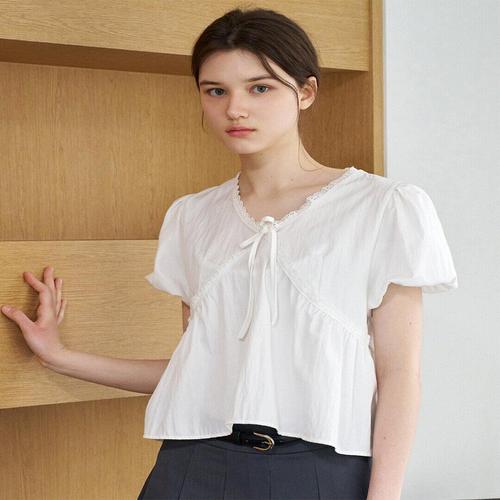 [위시드]리본 포인트 반팔 블라우스 (WIDBBL002)