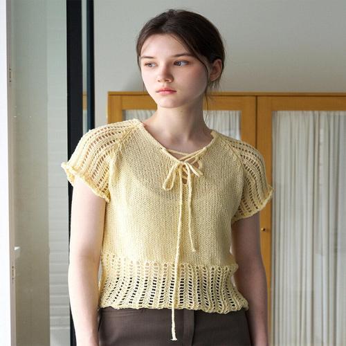 [위시드]리본 나그랑 그물 반팔 니트 (WIDBNT003)