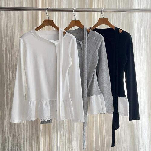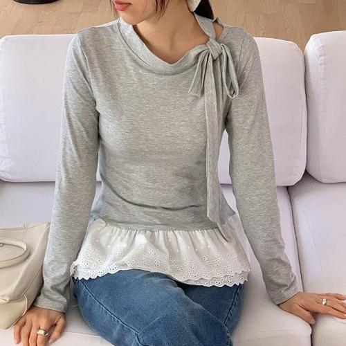 [다잇템][다잇템] 여자 리본 롱타이 귀여운 프릴 레이스 티어드 티셔츠_24610596_588872