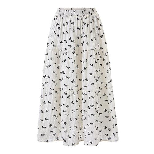 [미니멈에브리데이][미니멈 에브리데이]러블리 리본 패턴 티어드 밴딩 롱 스커트 (EC2WH005D)