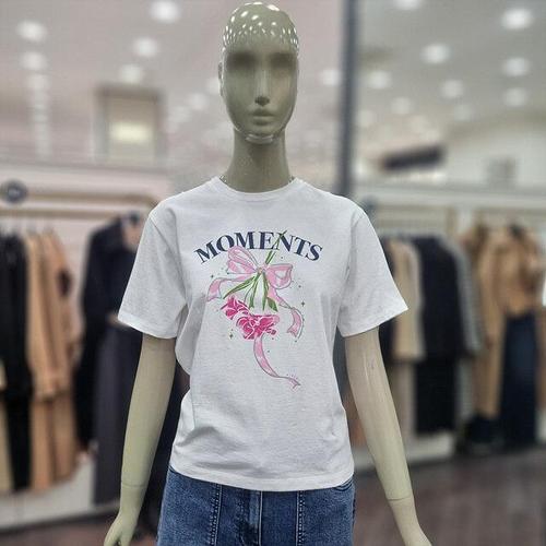 [오너클랜]인기상품 라운드넥 반팔 자수 리본 장식 크롭 티셔츠 [WFLLATQ_260304]