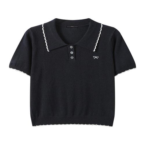 [르샵]리본 자수 포인트 카라 반팔 니트 (DQ2KT001A)