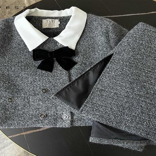 [예쎄][예쎄] 리본장식 더블버튼 자켓 + 스커트 세트 (S3WSE005A)