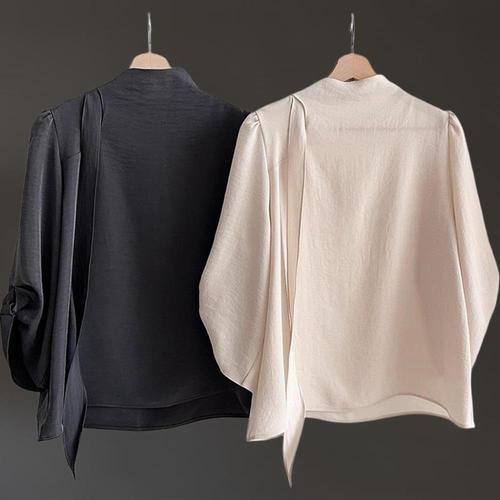 [신상오픈런]여성 가을 하객 패션 리본 스카프 꼬임 7부 박시 블라우스