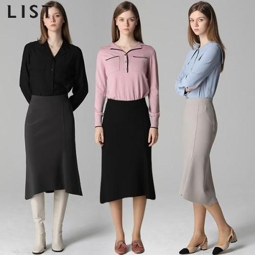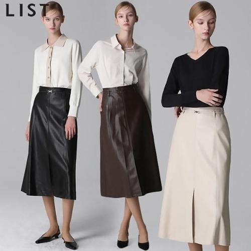 [리스트][리스트(LIST)] 언밸런스 플리츠 미디 스커트 (택가격178000원)