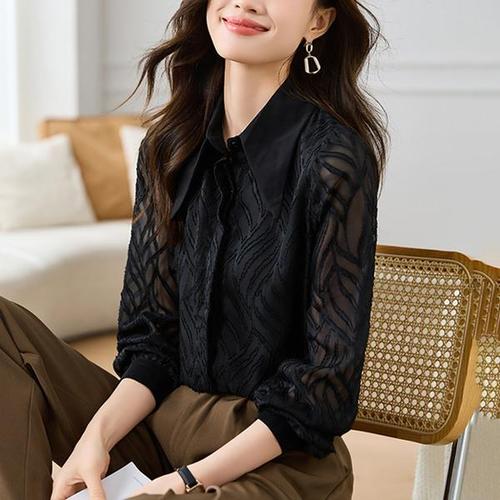샵앤) 261 리프펀칭 레이스 나뭇잎 블라우스 MSE-WBL-12108-소라