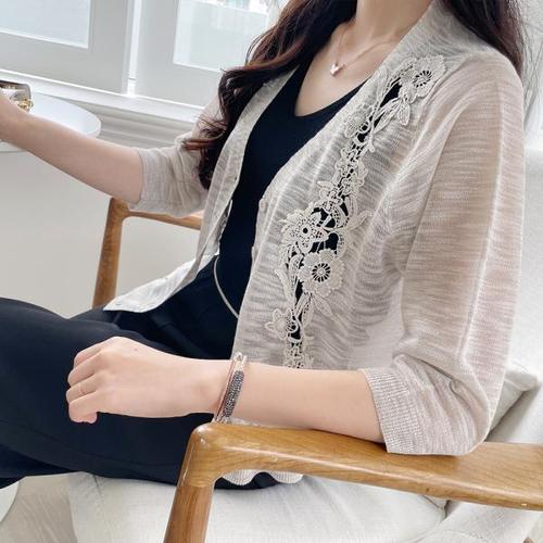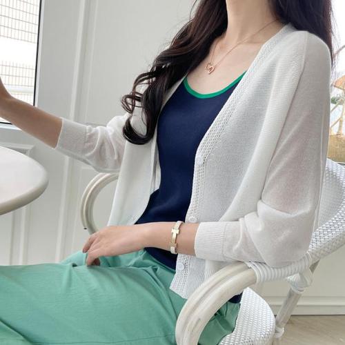 [끌레아]여성 얇은 소재 시원한 펀칭 여름 가디건 볼레로 카디건 봄볼레로 니트 긴팔 반팔 린넨