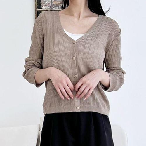 [에이치플러스몰]린넨 여성 가디건 여름 브이넥 여자 긴팔 가디건 5색