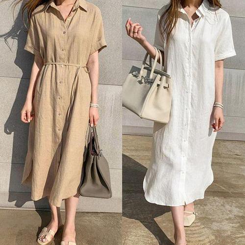 [셀러허브_여성트랜드패션]Rly DHH-B107 린넨 반팔 롱 셔츠 원피스