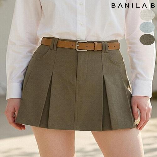 [바닐라비][M-L]여성 벨티드 린넨 플리츠 미니스커트