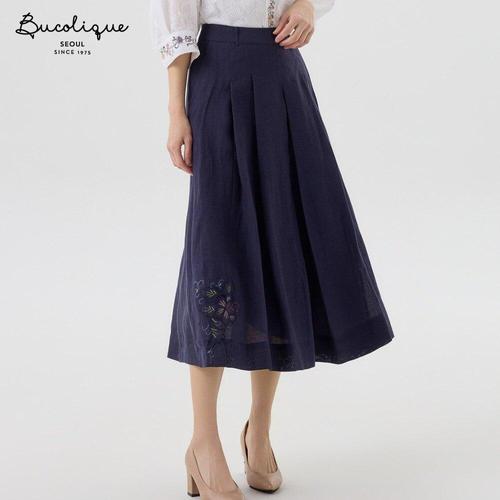 [비꼴리끄]린넨 자수 개더 스커트 B262WK3010