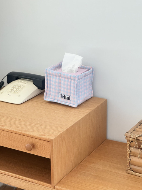 [데하이] 빈티지 린넨 체크 휴지케이스