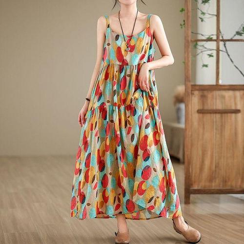 |CCO568E|여성용 비스코스 린넨 민소매 롱드레스 스트랩 원피스