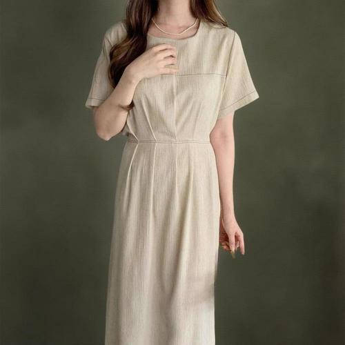 여성 카라넥 린넨 반팔 루즈핏 롱 원피스 WON-WDR-WA65D82