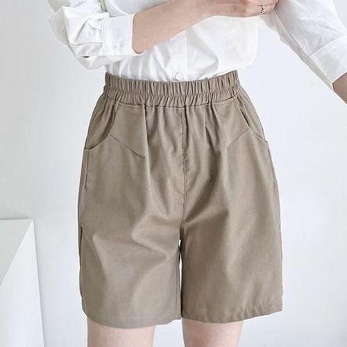 [에이치플러스몰]베이직 여성 반바지 여름 린넨 팬츠 여성 밴딩 반바지