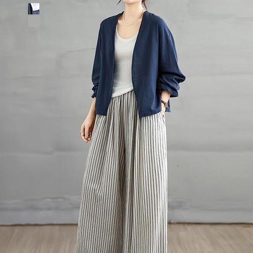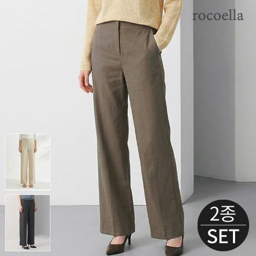 [로코엘라] 줄리 린넨 블렌드 여성 와이드 밴딩 팬츠 2종세트
