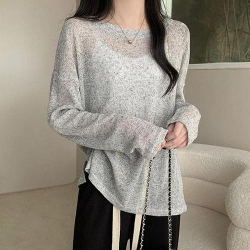 [에이치플러스몰]시스루 터틀넥티셔츠 탱크탑 린넨긴팔티셔츠 여자