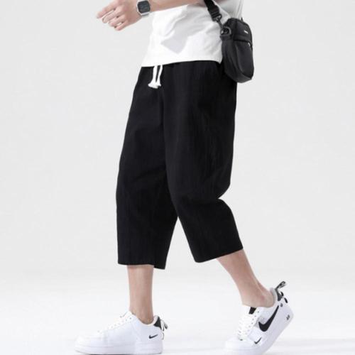 남성 여름 린넨 7부 밴딩 바지 와이드 크롭 팬츠 시원한 데일리룩