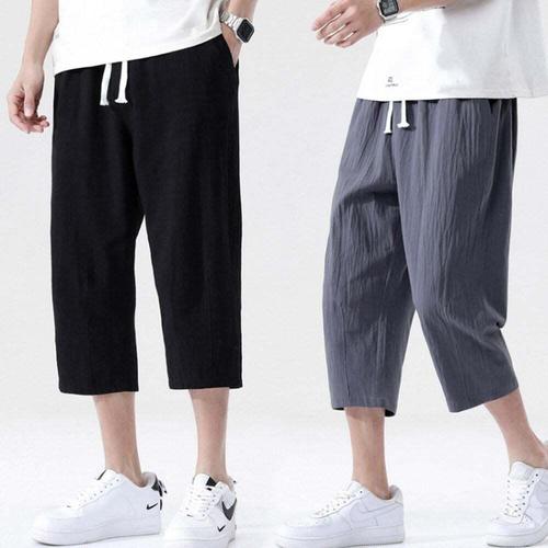 편안한 7부 린넨 남성 소재 밴딩 허리 바지 시원한 남 WFIOXW3