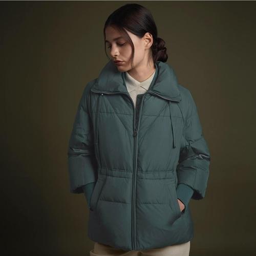 [링스골프]여성 와이드 에리 중기장 구스 다운 점퍼 L21E4JP259_GN