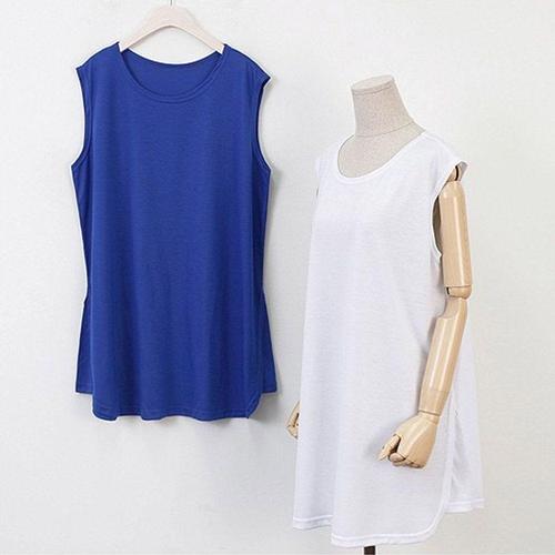 중년옷 빅사이즈 미시 마담오버핏 롱 나시 민소매 티 미시 엄마 임부복