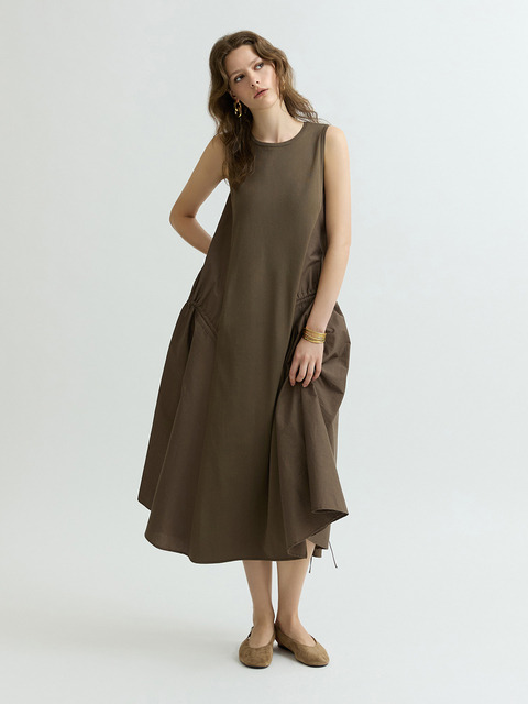 [마레디마리] Sleeveless String Point Maxi Dress - Khaki