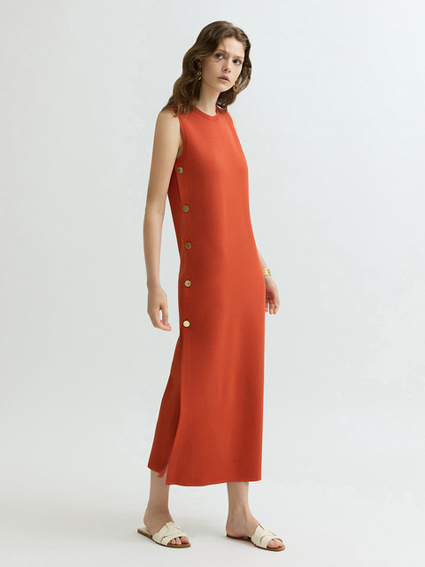 [마레디마리] Gold Point Sleeveless Knit Dress - Brown
