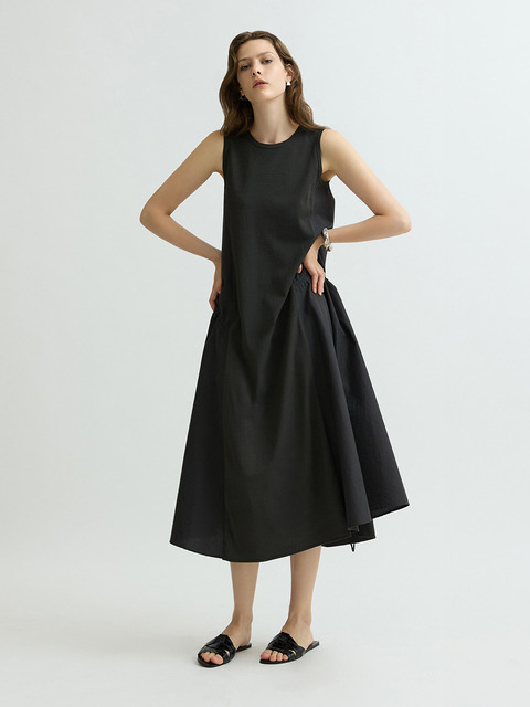 [마레디마리] Sleeveless String Point Maxi Dress - Charcoal