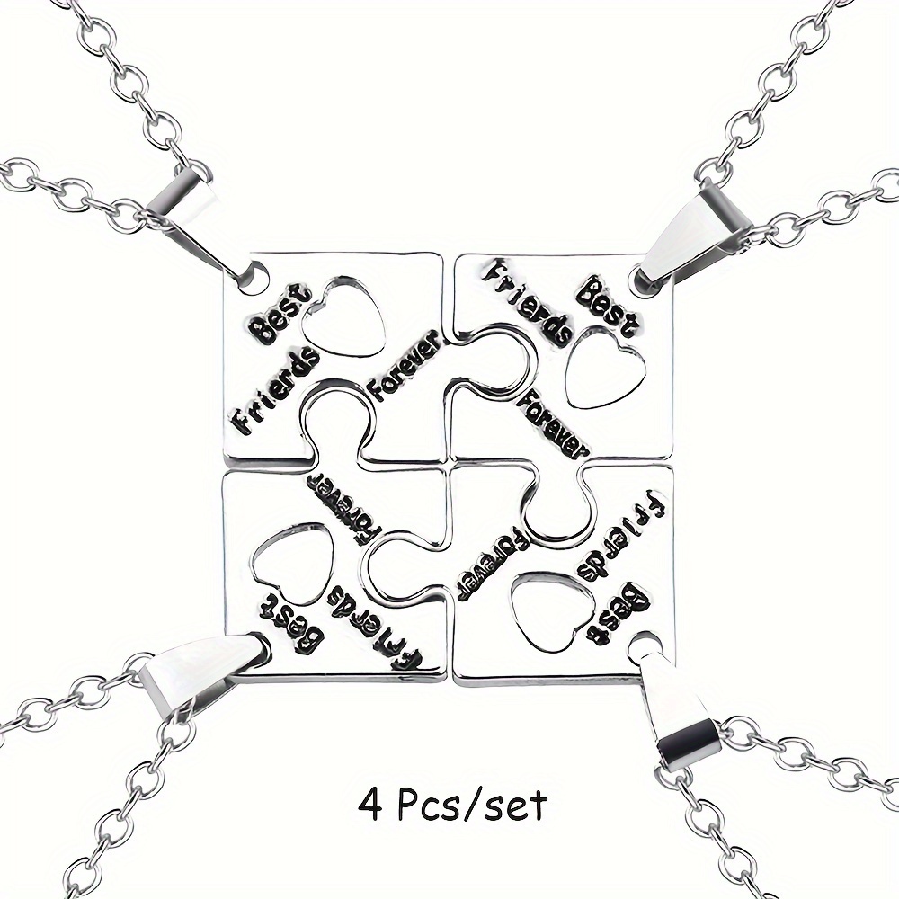 TEMU 4개 퍼즐 참 목걸이 세트, 우정 유지 문자 펜던트 목걸이, 빈 사각 펜던트 체인 칼라, 여성용 주얼리 선물, 개봉 시