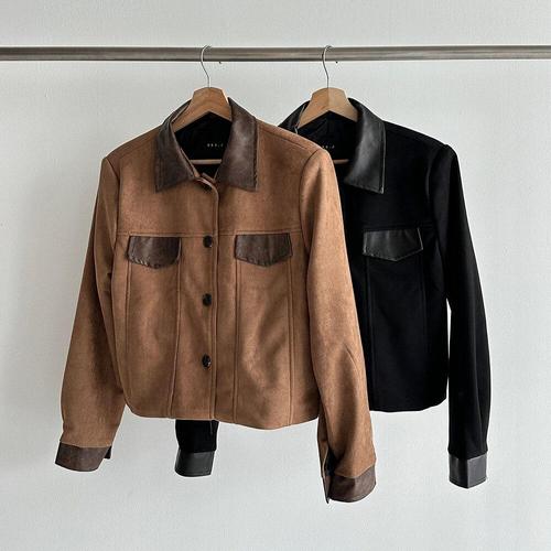 [다잇템]여성 믹스 가죽카라 FW 자켓