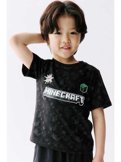 [에이치엔엠] 프린트 티셔츠 블랙/마인크래프트 1327864003