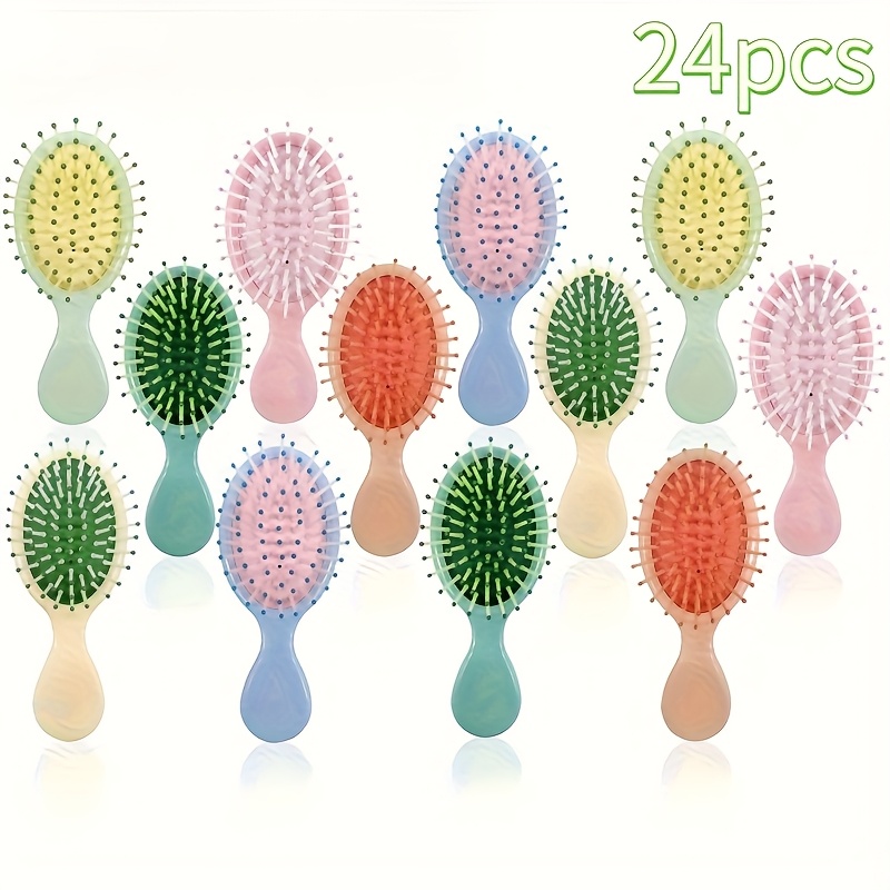 TEMU 24개 미니 마카롱 헤어 브러쉬 세트 – 쿠션 빗 포함, 휴대용 여행용 헤어브러시, 신부 들러리 선물, 컴팩트 포켓 브러쉬