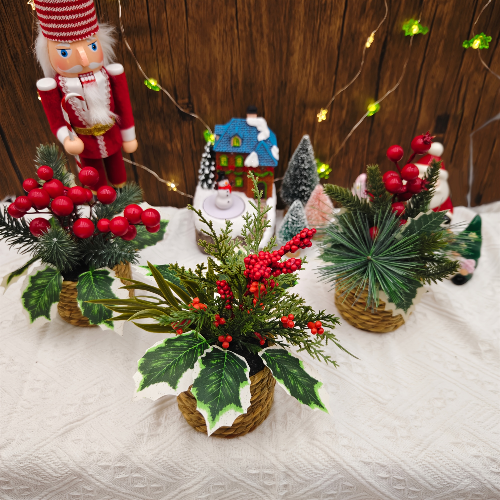 TEMU 3개 혼합 크리스마스 장식 화분 식물, 크리스마스 홈 장식, 휴일 파티 장식, 실내 정원 장식, 주방 테이블 센터피스에 사용됩니다.