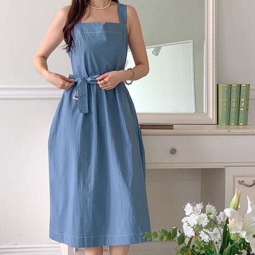 [다잇템][다잇템] 여자 사각 슬리브리스 혁대 마원단 휴양지룩 롱원피스_21187284_588872