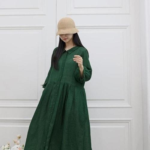 [브이와이][VY] 여자 마원단 롱슬리브 빅사이즈 남방 혁대 진초록 롱원피스_12802629_588847